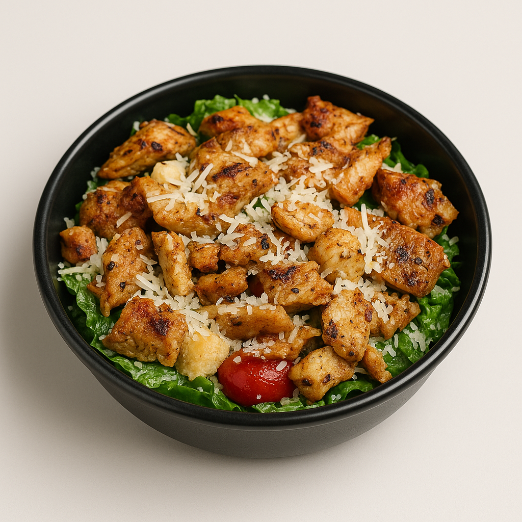Grilled chicken breast over crisp romaine lettuce, topped with juicy tomatoes, crunchy herbed croutons, shaved parmesan, and creamy ranch dressing. A hearty, refreshing classic.