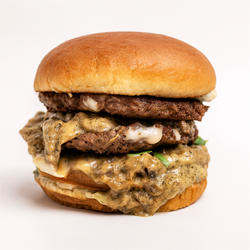 Premium Angus beef topped with a rich cheese blend, sautéed mushrooms, crisp lettuce, and our signature Wallstreet sauce—a classy bite that means business.
